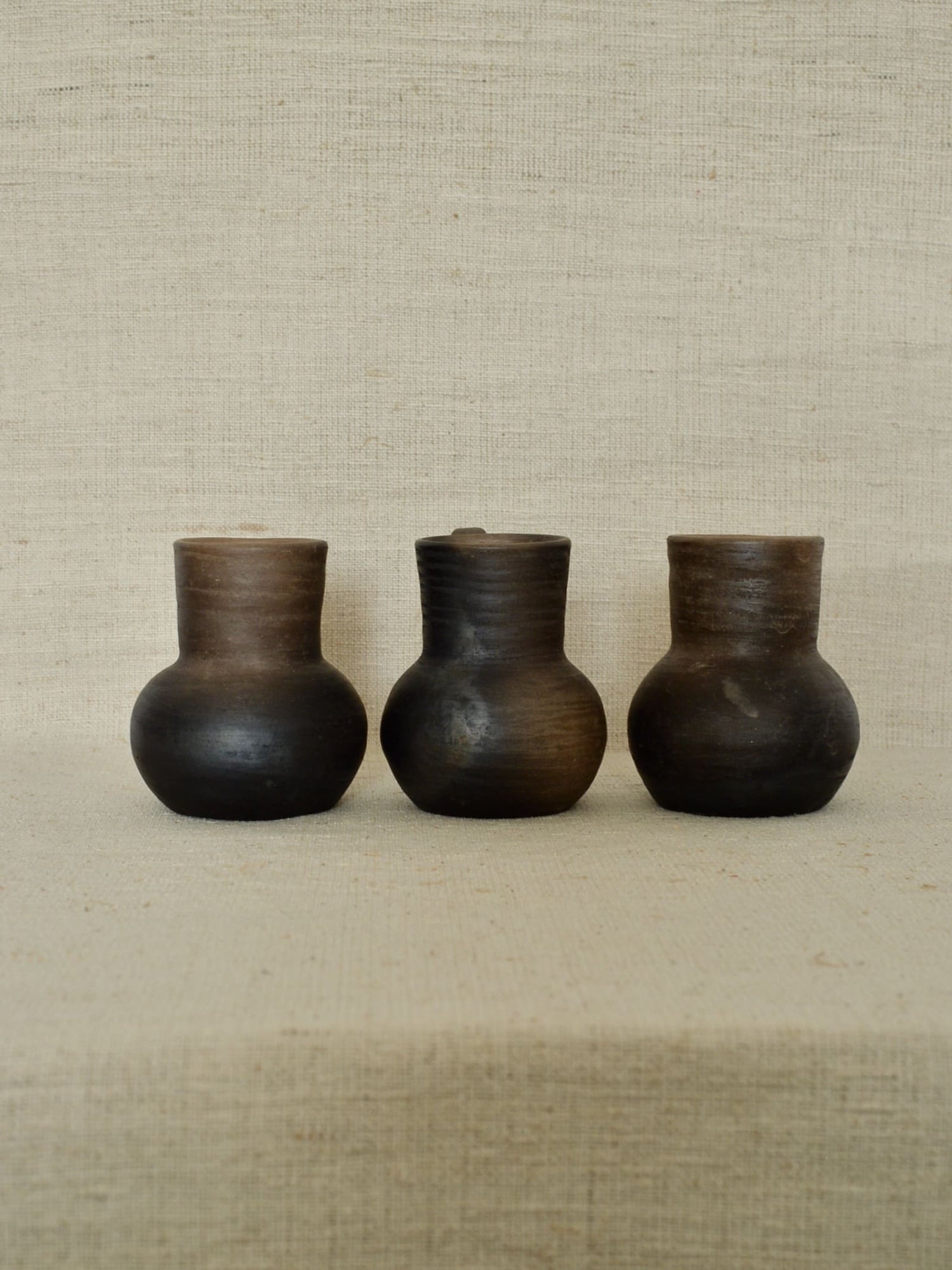 滑らかでマットな仕上がりとチャコールブラックの色、土の素朴な存在感があります。