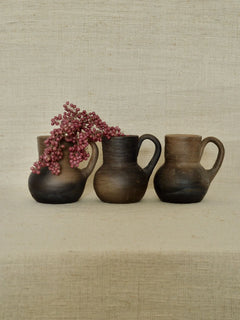 持ち手がついた素焼きの水差しは内側に釉薬のコーティングがあるので、フラワーベースとしても使いやすいです。