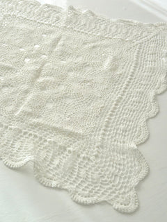 オフホワイトのハリのある糸でたっぷり模様が編まれています。