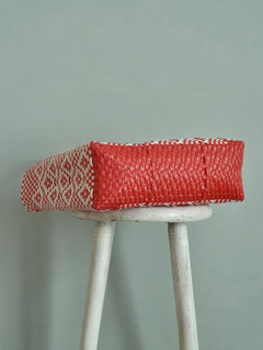 メルカドバッグの生産背景はさまざまで、もともと植物の繊維を割いて作る「かご」編み職人が、多くの工程を要する植物素材の代わりに再生プラスチックコードを使うようになり生産していることや、社会復帰の職業訓練として受刑者が作ることもあります。