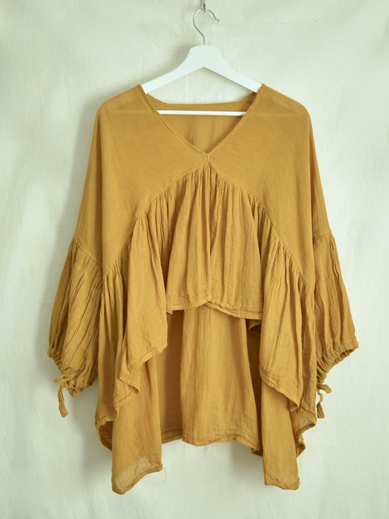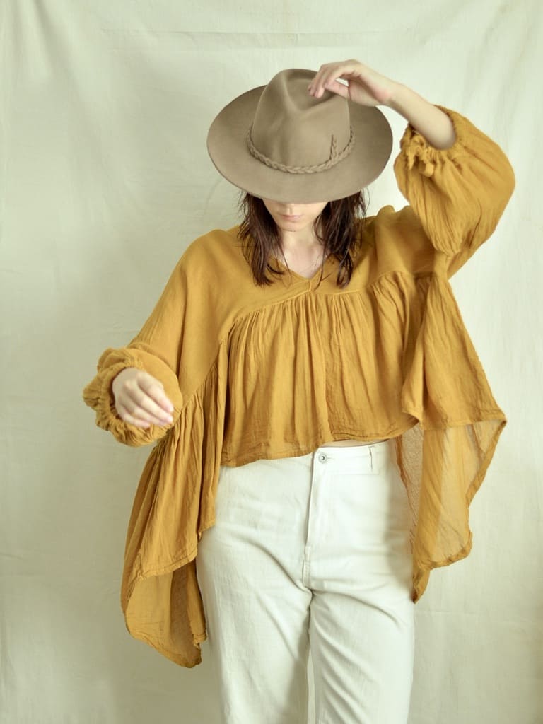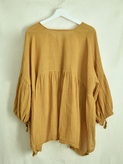 가슴 밑과 슬리브 중간에 들어간 개더가 여성스러운 분위기입니다.