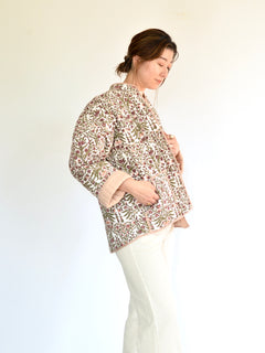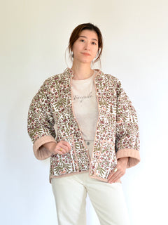 초목 염색과 핸드 블록 프린트의 리버시블 재킷입니다.