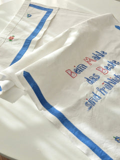 手刺繍で施された "Beim Mahle das Beste sind fröhliche Gäste"は、
