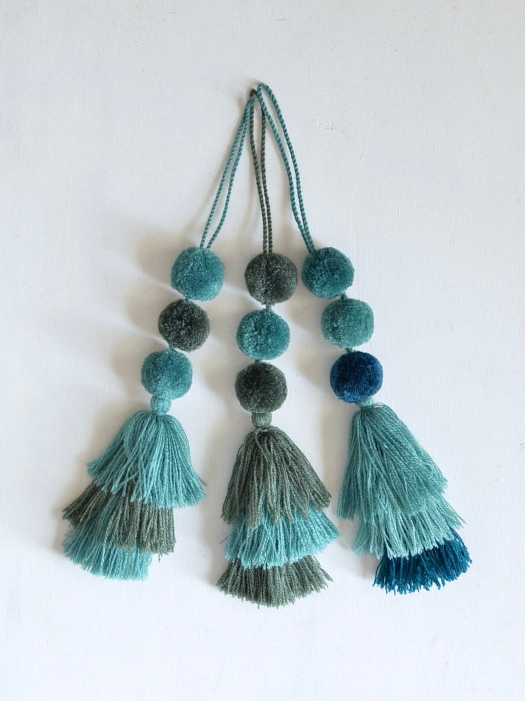 【サイズ】全長 約27cm ポンポンからタッセルまで 約18cm ハンドメイドのため個体差があります。表記サイズは目安であり、1~2cmほど前後する場合があることを予めご了承ください。