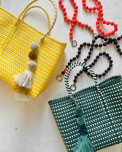 メキシコ、チアパス州のサンファンチャムラ村で作っているポンポンタッセルチャーム。