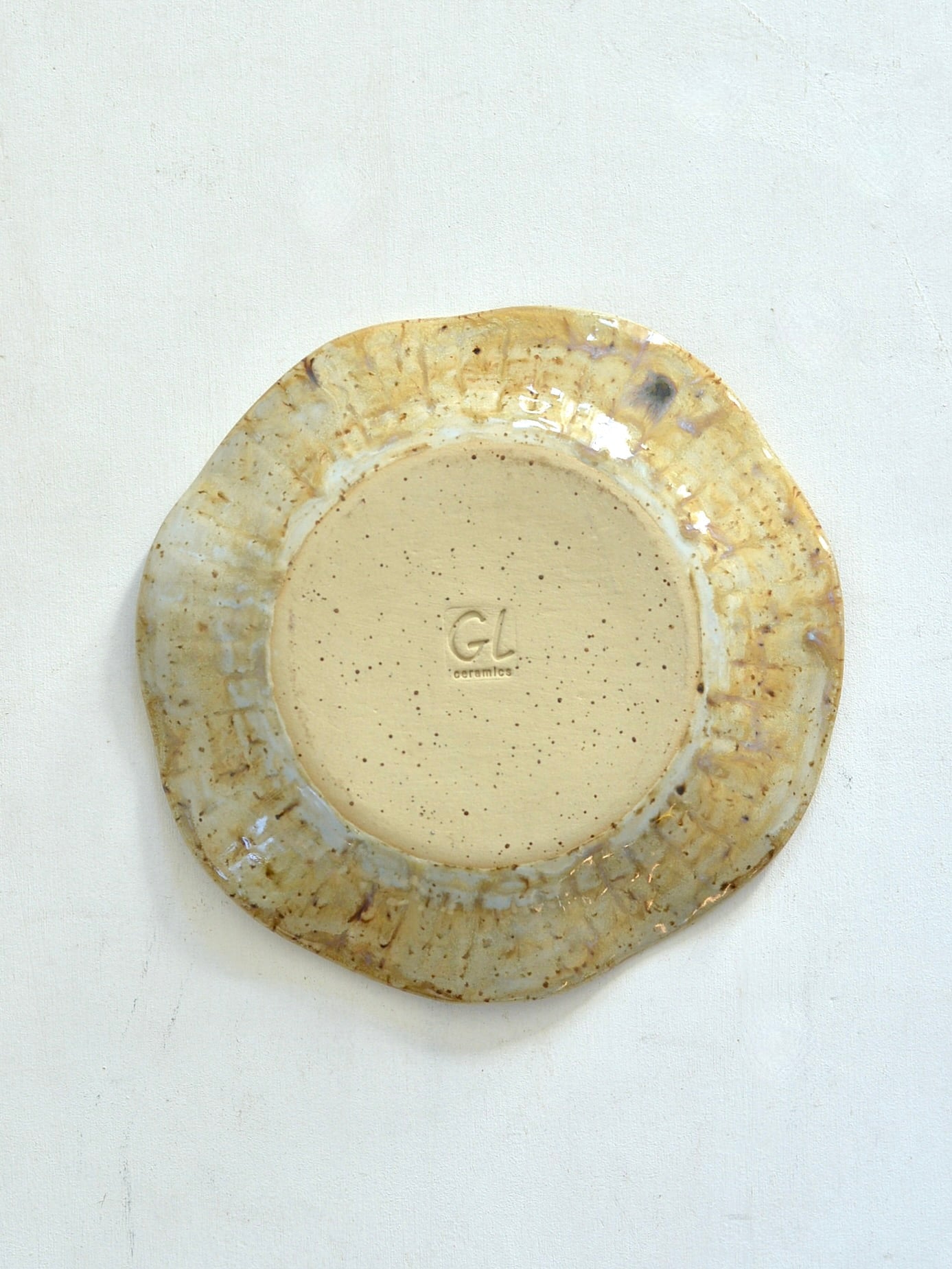 波のような縁取りと釉薬のまだら模様が繊細で美しく、独特な存在感があります。