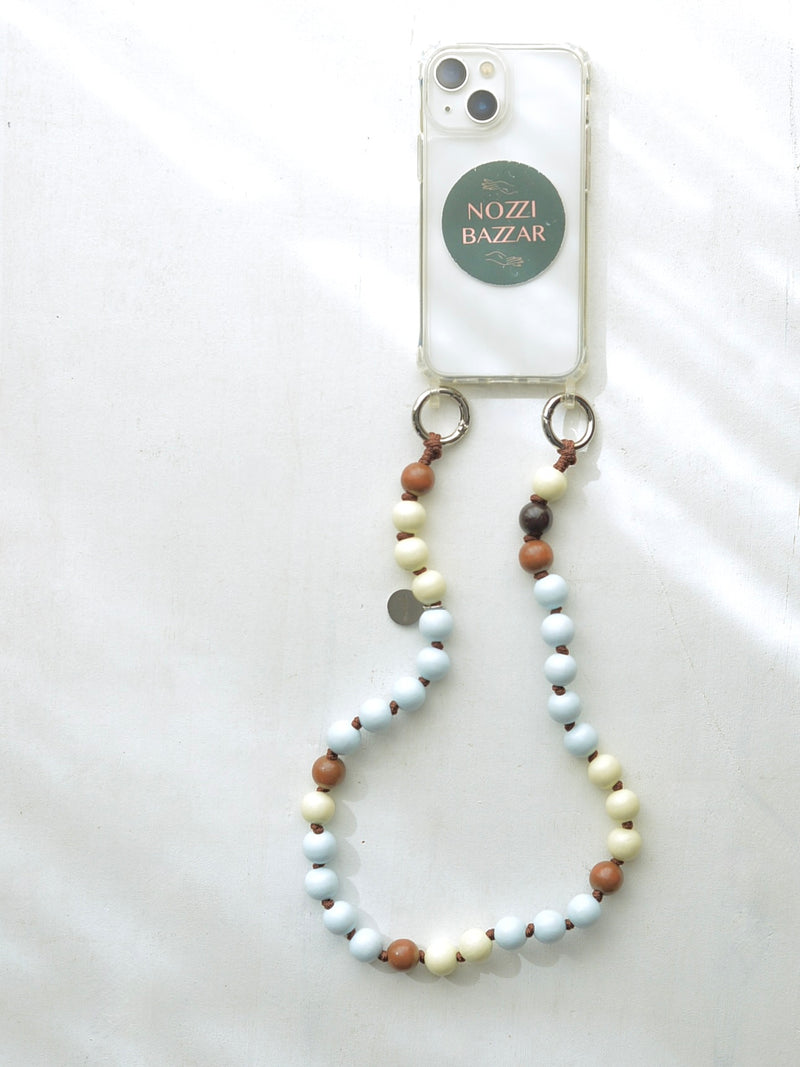 素材:FSC®︎認証ウッドビーズ、パラコード、巾着袋(スマホケースは付きません)