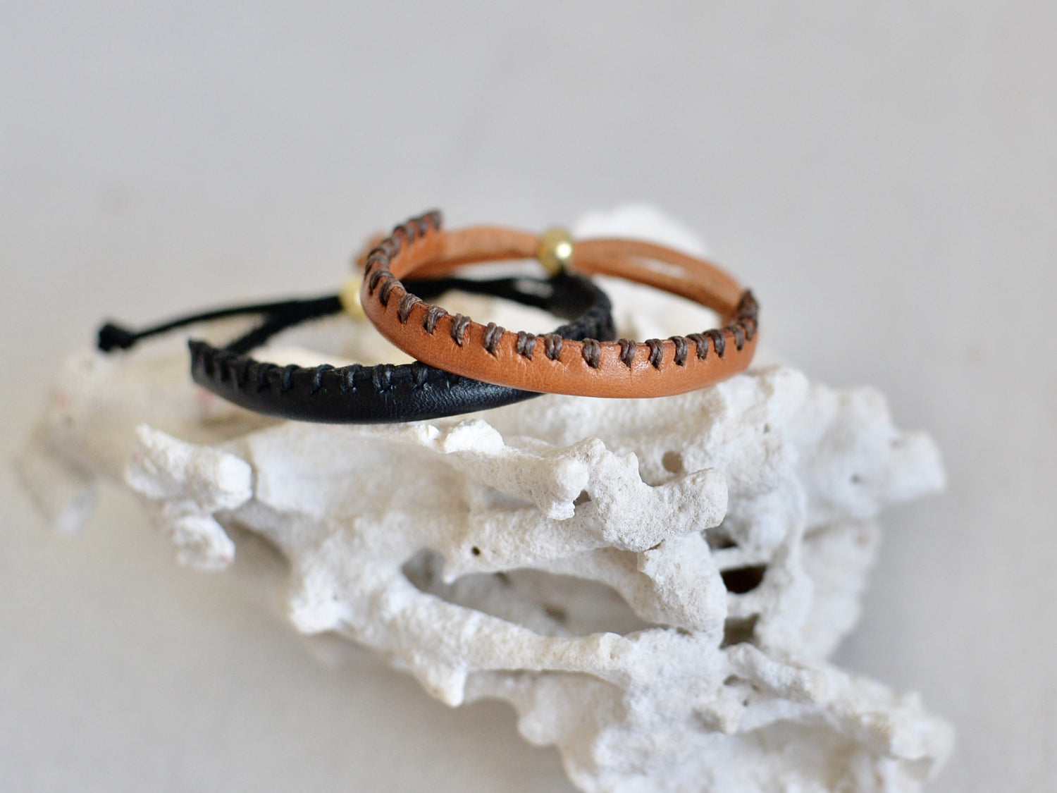 유용할 정도로 감촉이 나오는 가죽 팔찌.