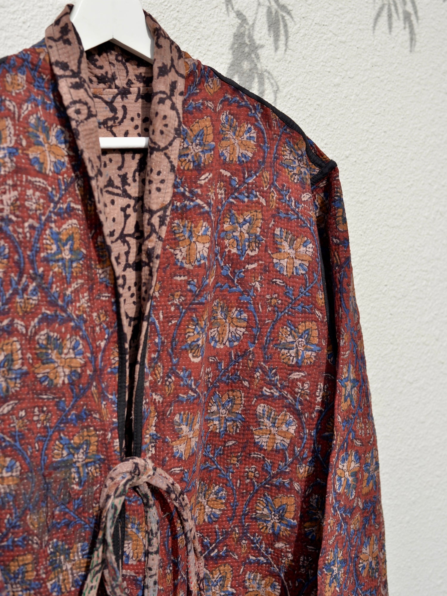 인도에서 방대한 스톡 중에서 선택한 칸타 퀼트를 재킷으로 완성했습니다.