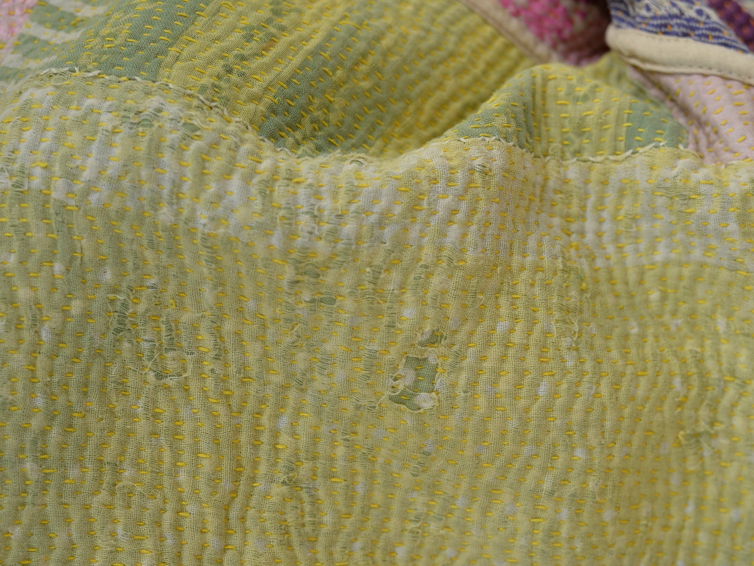 칸타 퀼트, 랠리 퀼트, 구들리 등 다양한 명칭을 갖춘이 천은 인도 수공예로 가득합니다.