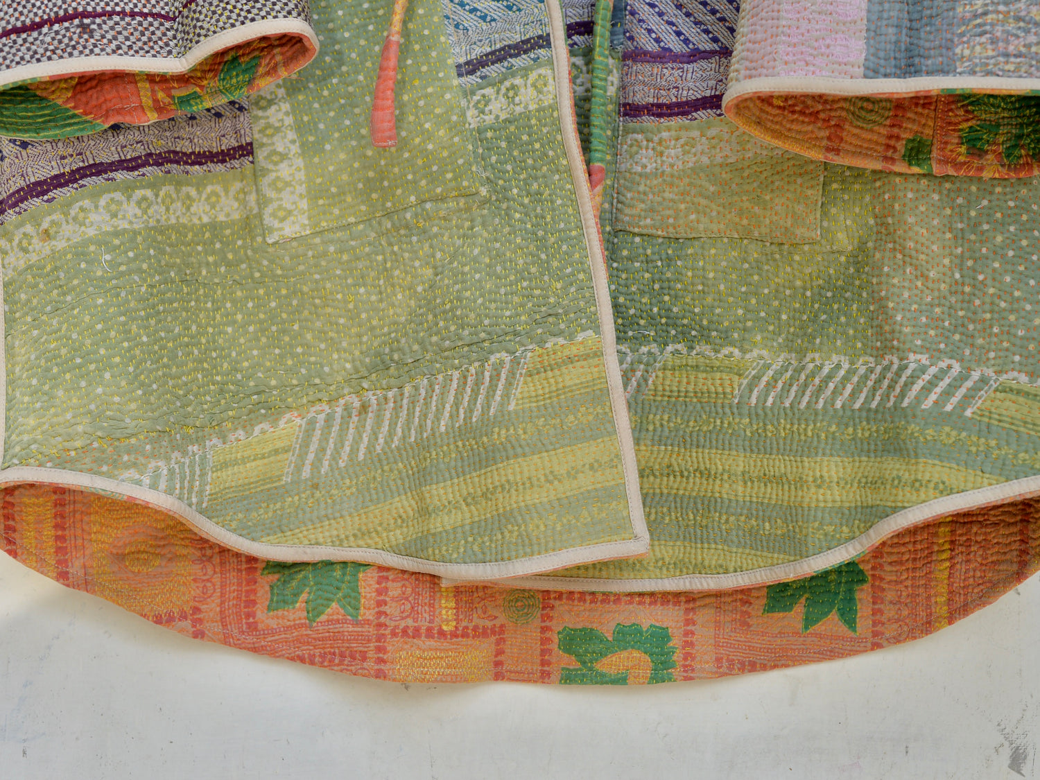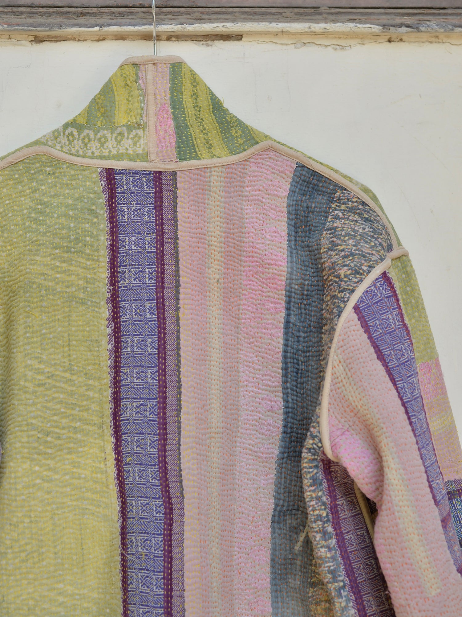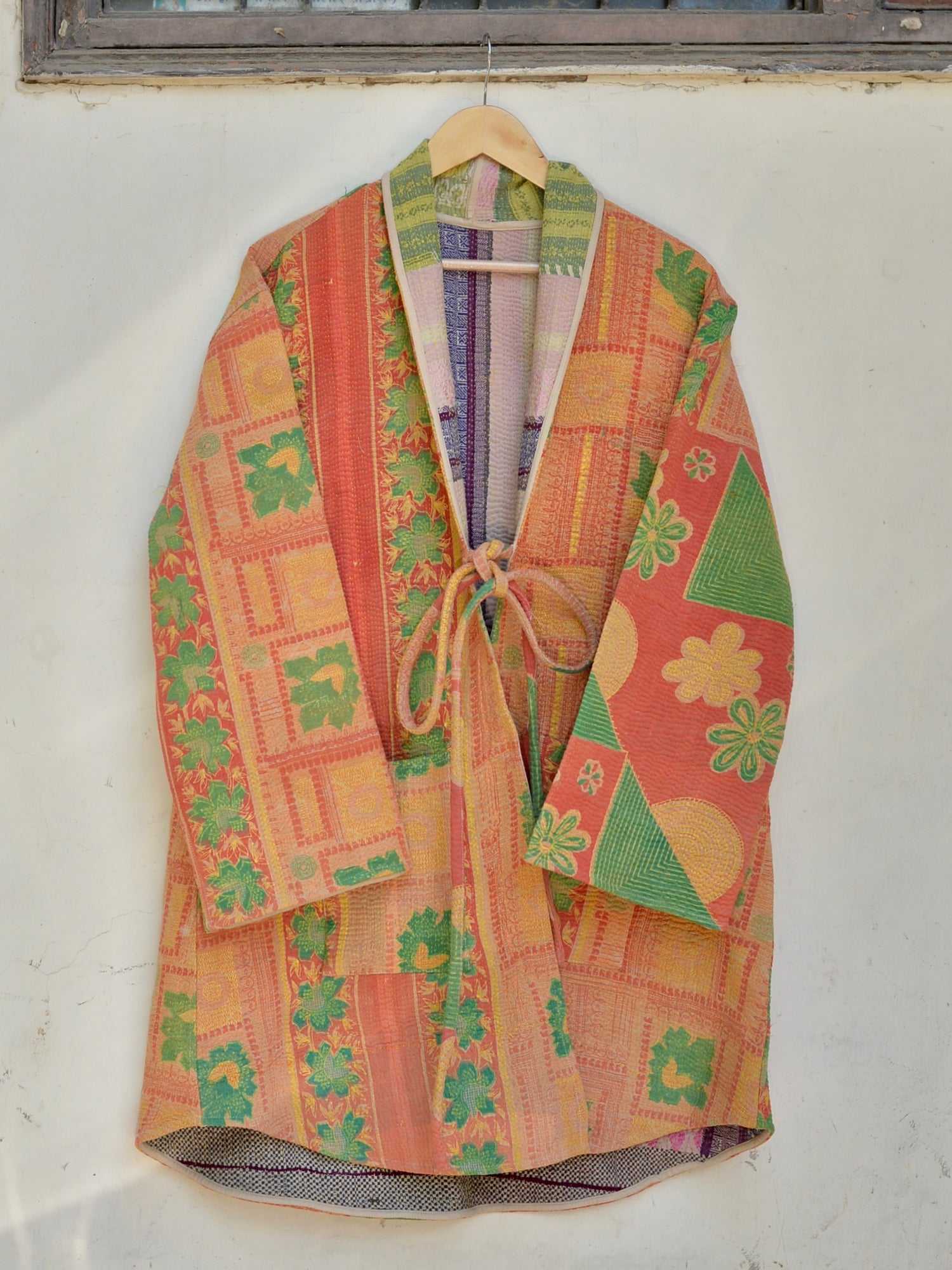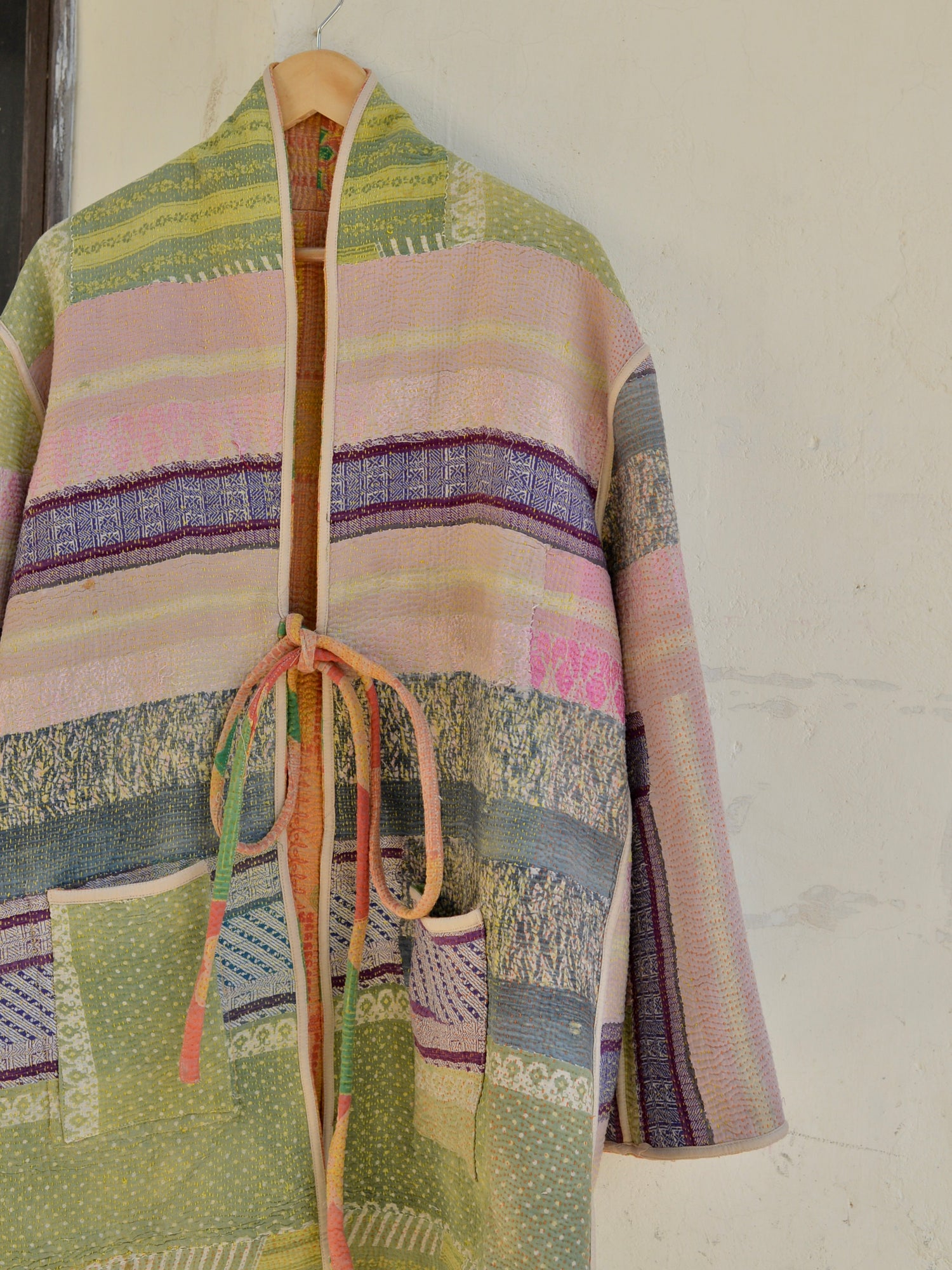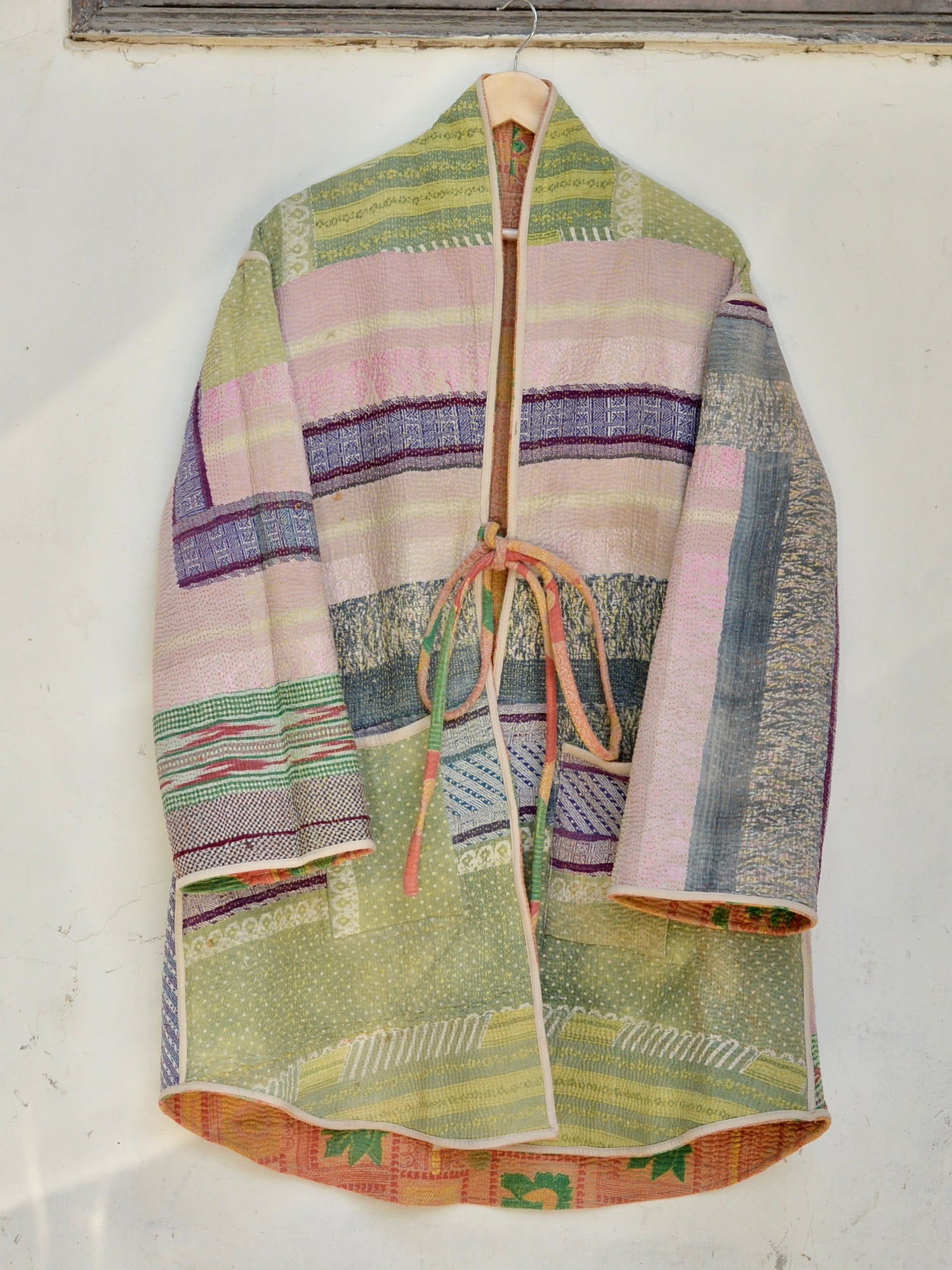 인도에서 방대한 스톡 중에서 선택한 칸타 퀼트를 재킷으로 완성했습니다.