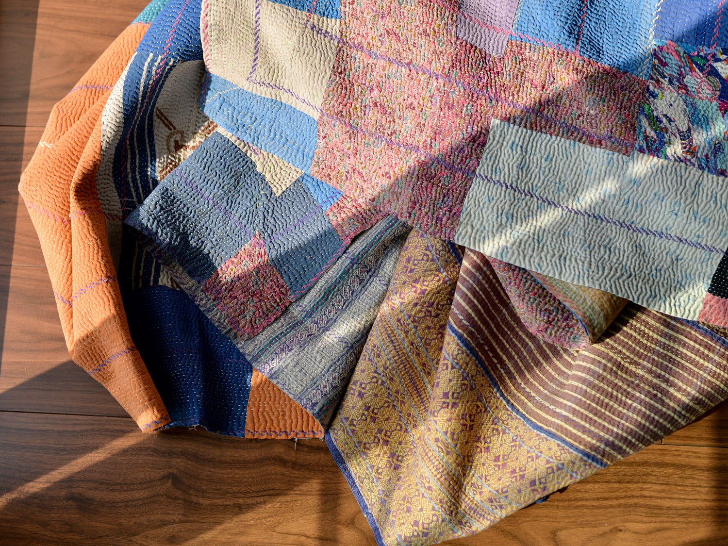 칸타 퀼트, 랠리 퀼트, 구들리 등 다양한 명칭을 가진이 천은 인도 수공예로 가득합니다.