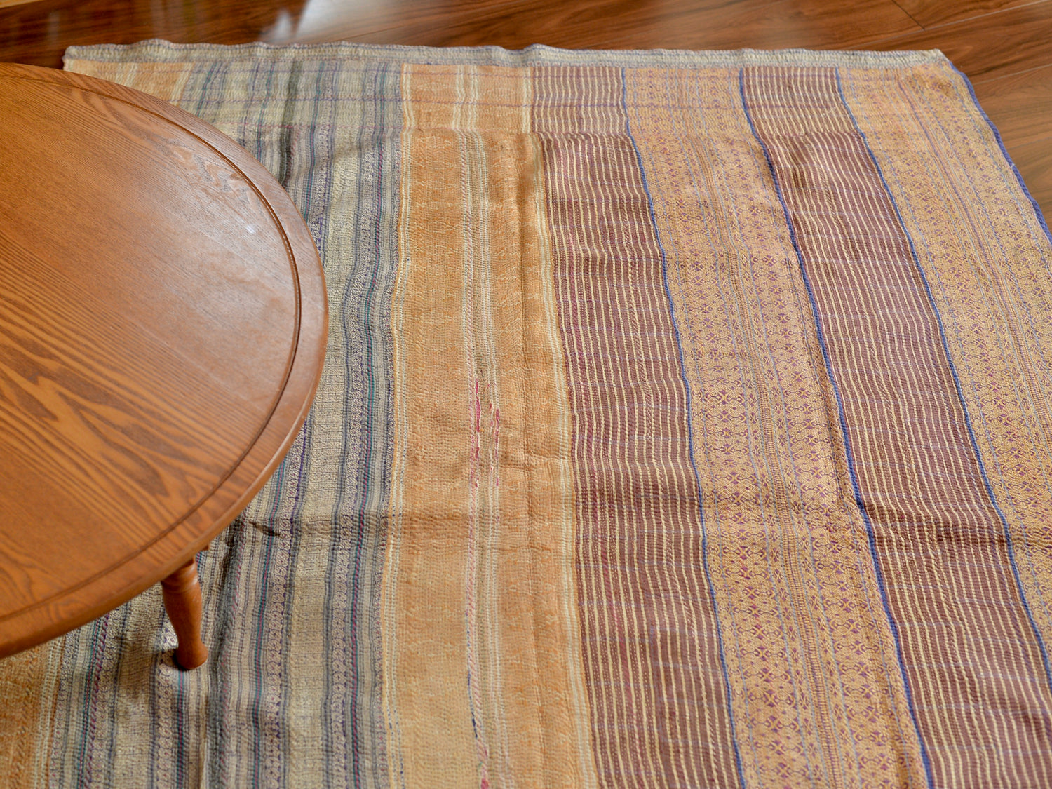 마을에서 멀리 떨어진 국경 근처의 마을 사람들이 일상 생활에서 사용하기 위해 제작하고, 보강이나 연결을 하고 수십 년간 소중하게 사용되어 온 천. 결혼 시에는 아내들이 도구의 하나로 할 정도로 생활에 빠뜨릴 수 없는 천입니다.