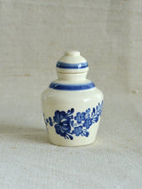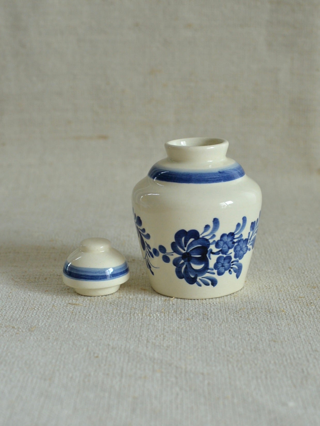 白いぽってりとした質感の磁器に手描きのネイビーブルーの花模様が綺麗です。