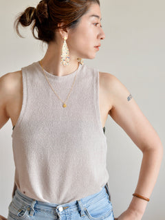 首元があく春夏だけでなく、ニットのトップスにあわせてもかわいいです。