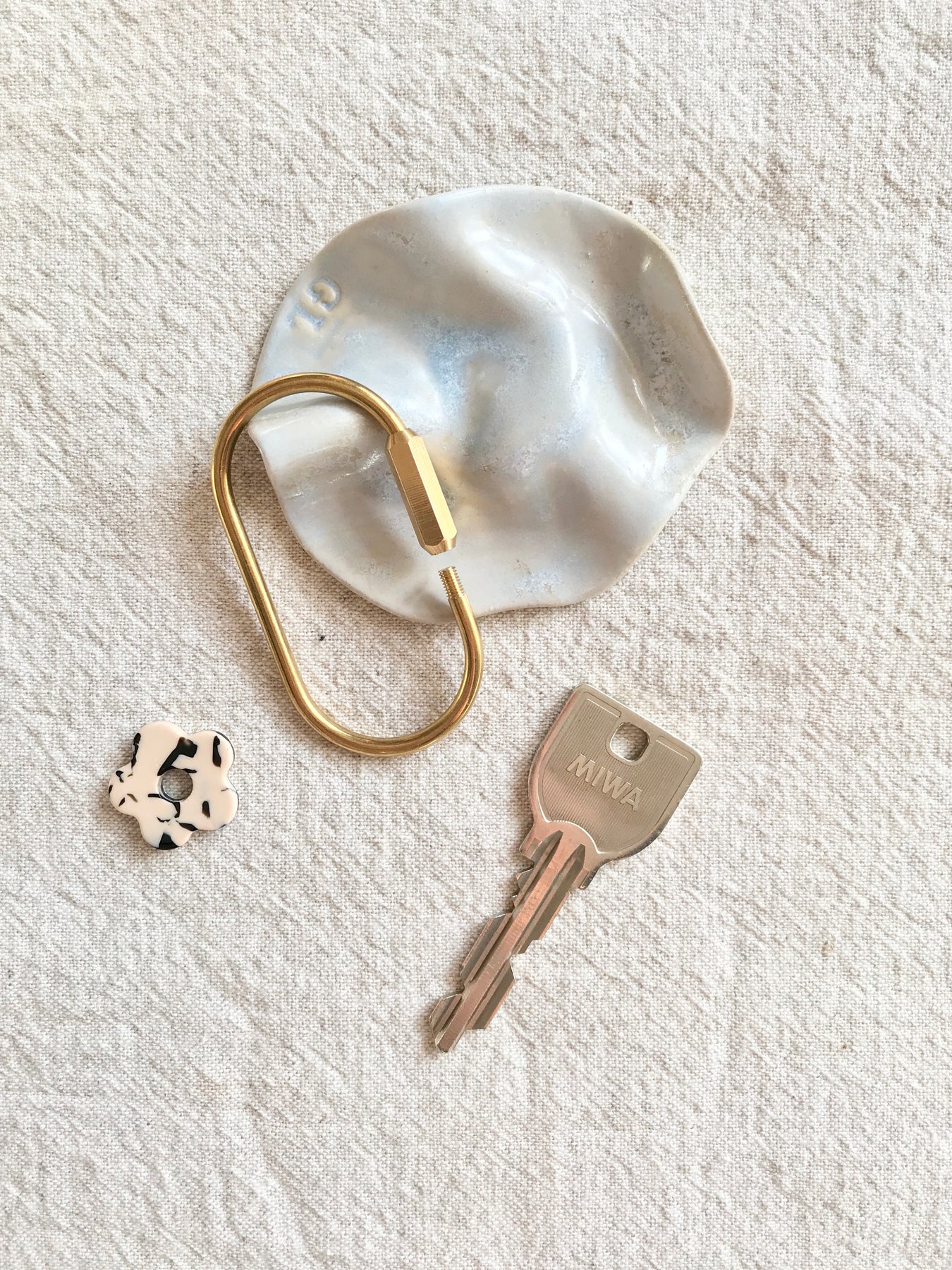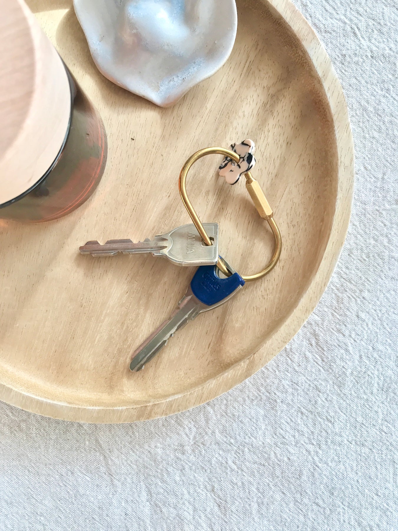 ずっとしっくりくるものを探していて見つけたカラビナ型のキーリングは真鍮のシンプルなもの。