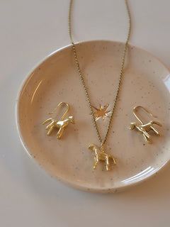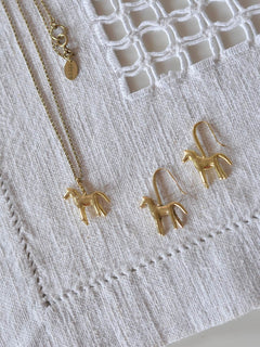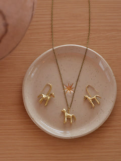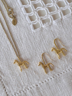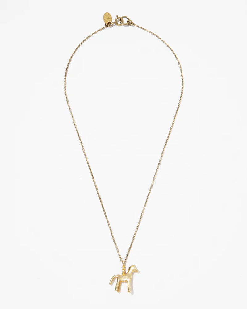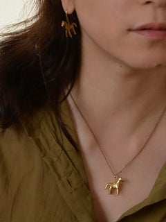 愛らしい馬をモチーフにしたネックレスは、つるんとした大量生産品にはない、ぽってりとしたフォルム。細かなテクスチャーにも独自の個性が宿っています。