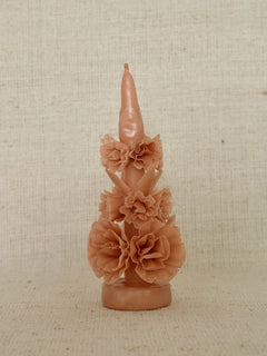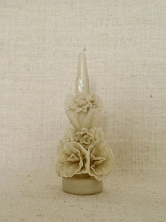 ソリッドカラーですが立体的な花の細工が華やかで、火を灯すのがもったいないくらい、素晴らしいフォークアートです。