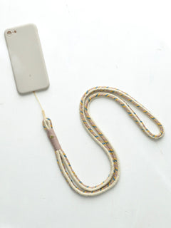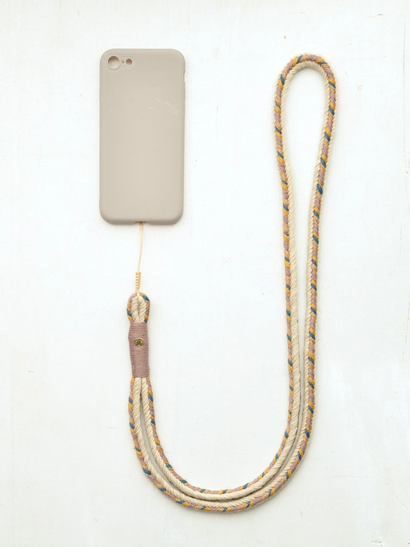 先端の紐は劣化しにくいアクリル糸で一般的なスマホの重さには耐えられますが、万が一通常使用で切れた場合は新しく蝋引き紐をこちらで付けることができますのでお問い合わせください。