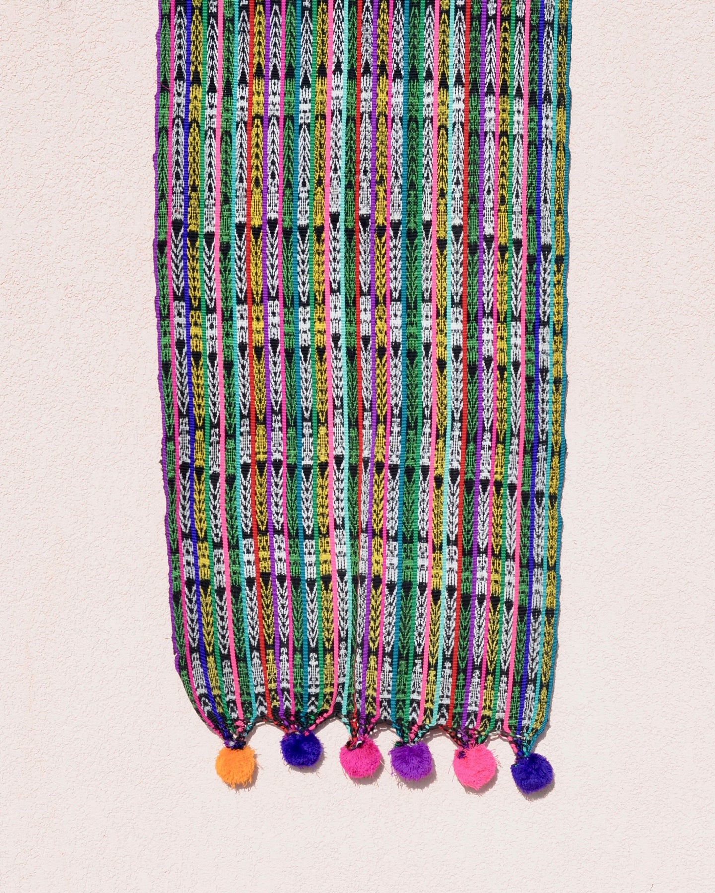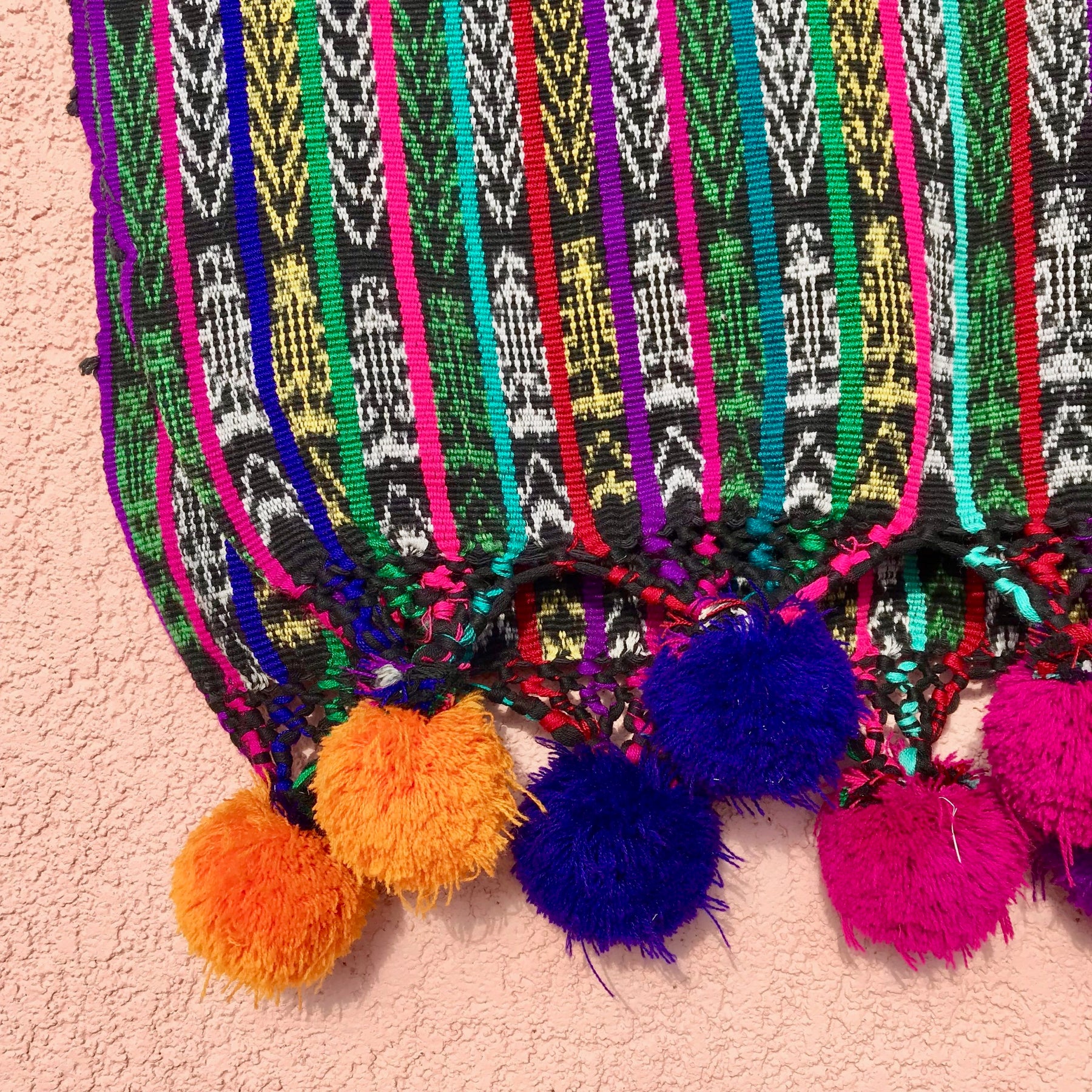 民族衣装の「ぺラへ」とよばれるグアテマラの織物は、ストールのようなもので、丈夫でハリがあり、とてもしなやかな手触り。