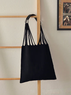 メキシコ ハンモックバッグ レザーハンドル ブラック 無地