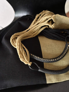 メキシコの手織りの風合いはそのままに、上質なドイツの革ハンドルで異素材のミックス感も楽しめるデザイン。