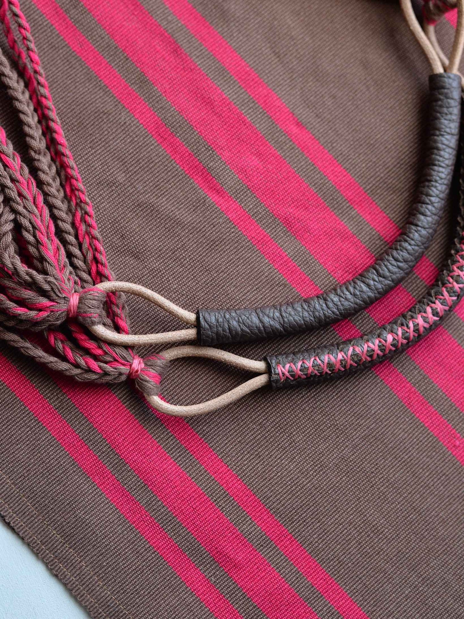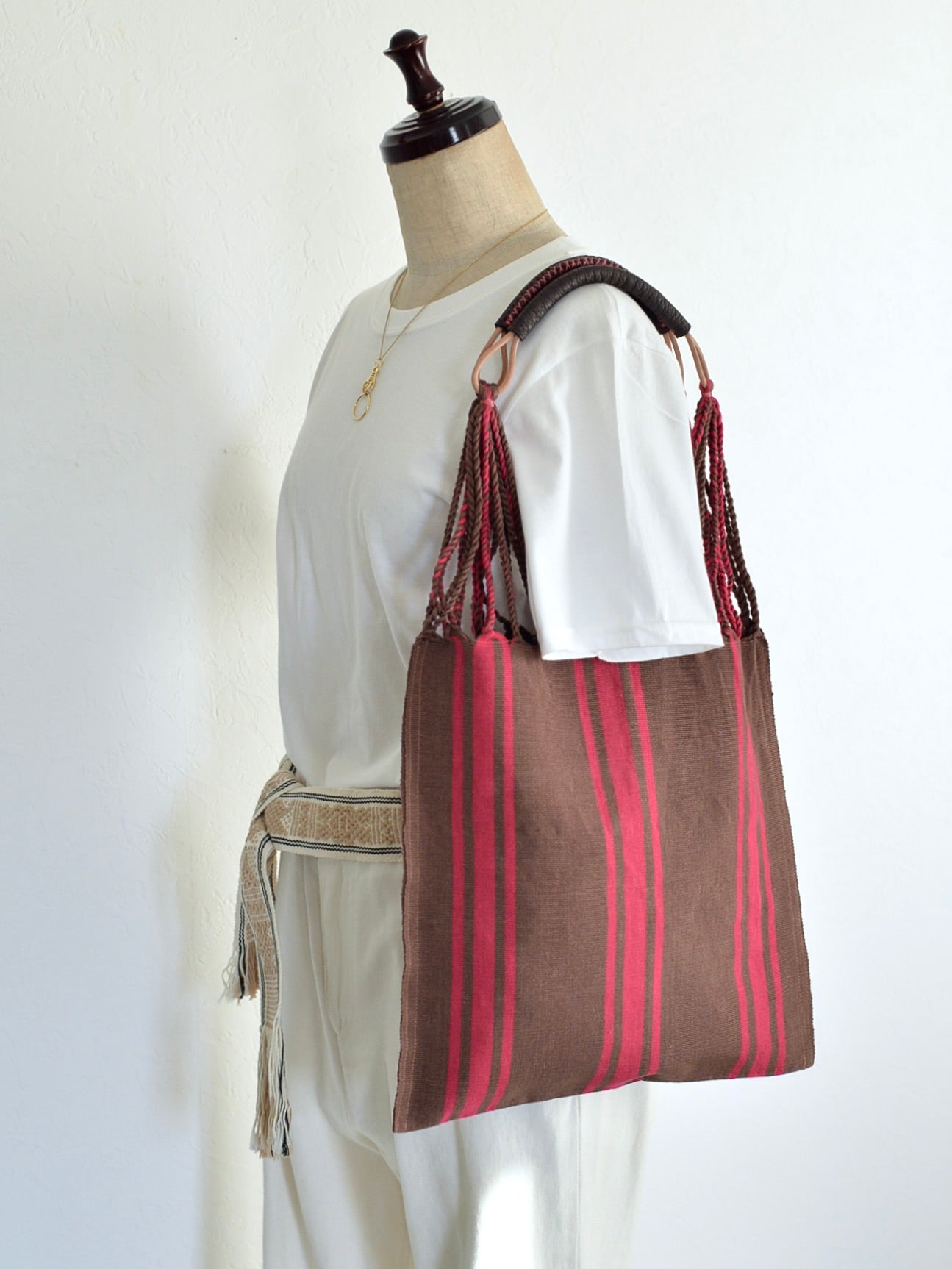 メキシコの手織りの風合いはそのままに、上質なドイツの革ハンドルで異素材のミックス感も楽しめるデザイン。