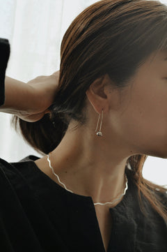 冬はタートルネックの耳元やボリュームのあるニットをシルバーの煌めきで引き締めて。