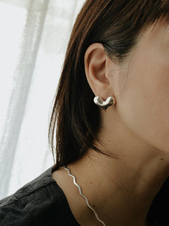 冬はタートルネックの耳元やボリュームのあるニットをシルバーの煌めきで引き締めて。