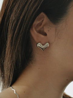 存在感のある大きめのハートとシルバーのシャープな輝きがコーディネートのスパイスに。