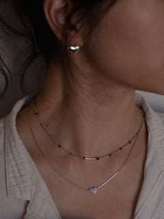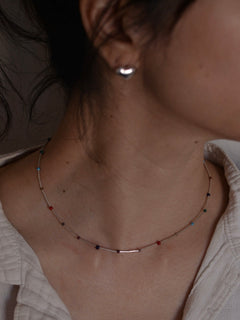 ネックレスは40cmと短めなのでチョーカーのように着けて。他のネックレスとの重ね付けも一気にこなれ感がでます。