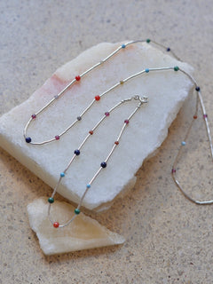 ボリビア産の天然石ビーズとシルバー925ビーズを組み合わせたネックレス&ブレスレット。