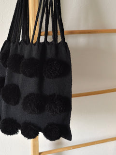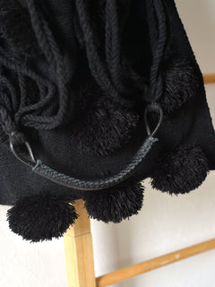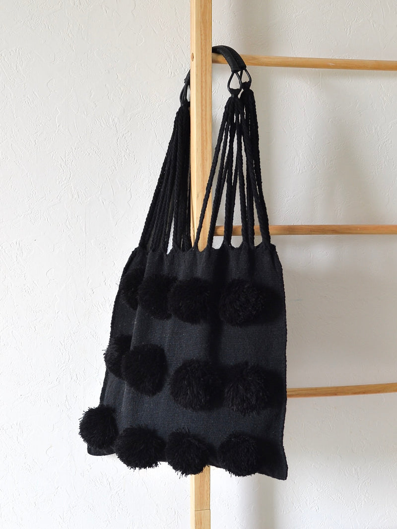 メキシコ ウール ハンモックバッグ レザーハンドル ポンポン ブラック