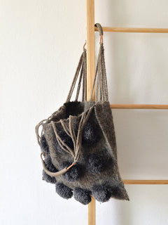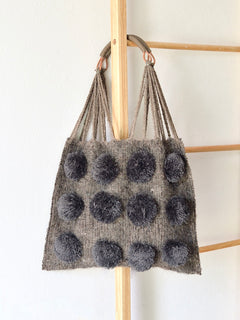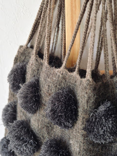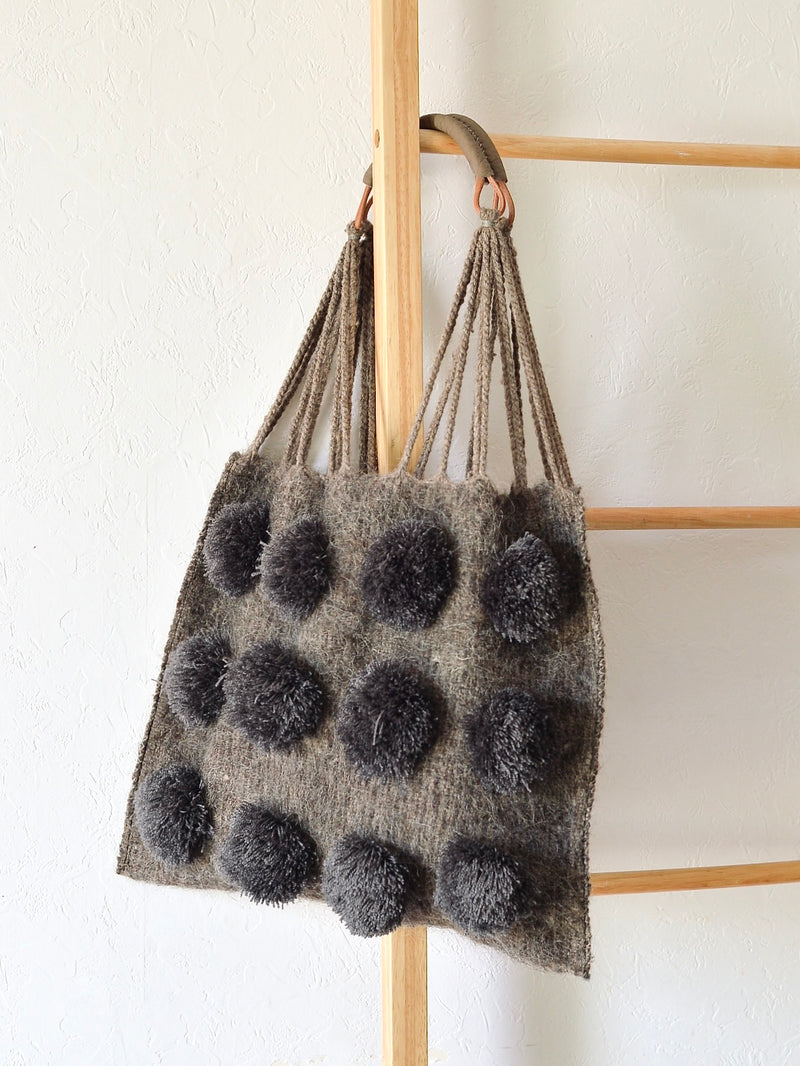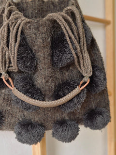 メキシコ ウール ハンモックバッグ レザーハンドル ポンポン グレー