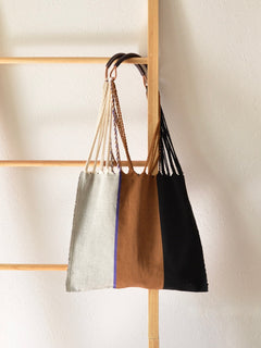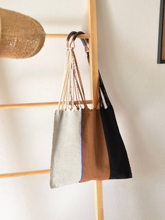 メキシコの手織りの風合いはそのままに、上質なドイツの革ハンドルで異素材のミックス感も楽しめるデザイン。