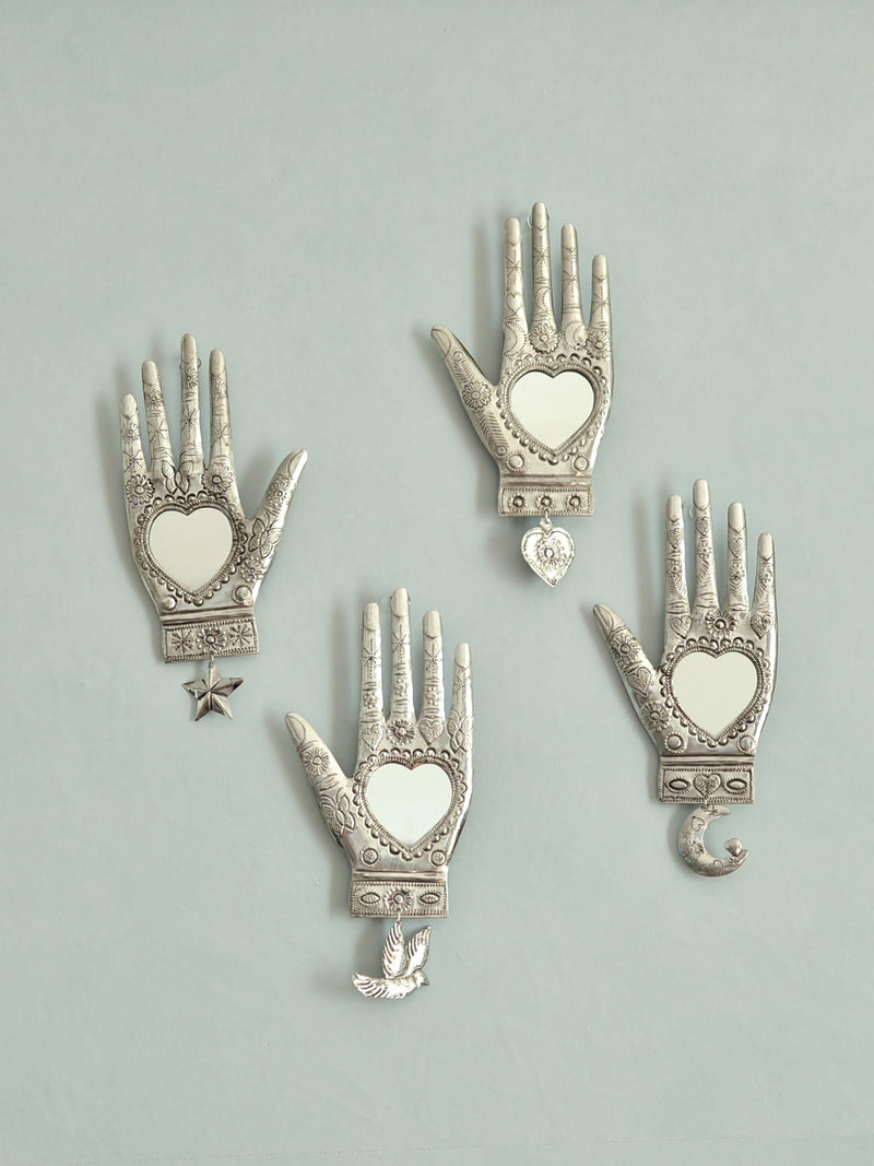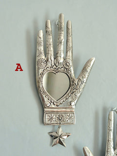 2025年の大晦日、メキシコ・オアハカのアルテサニアマーケットで偶然再会したオハラタ職人の家族から迎えた、ブリキ細工 「HOJALATA(オハラタ)」 のミラーです。
