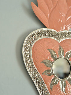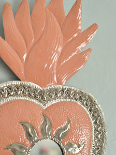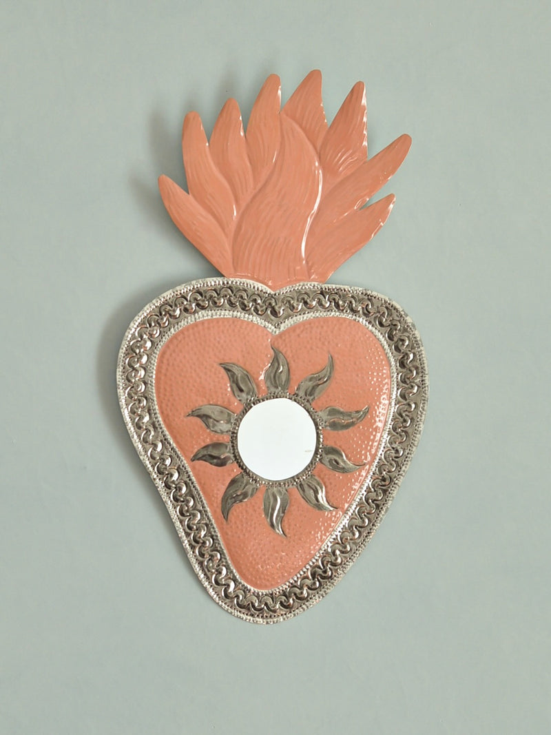 2025年の大晦日、メキシコ・オアハカのアルテサニアマーケットで偶然再会したオハラタ職人の家族から迎えた、ブリキ細工 「HOJALATA(オハラタ)」 のミラーです。