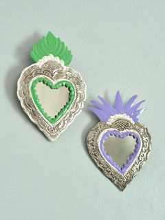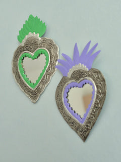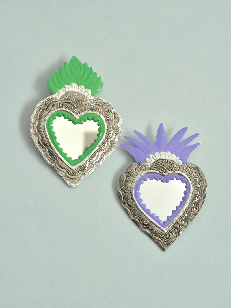 2025年の大晦日、メキシコ・オアハカのアルテサニアマーケットで偶然再会したオハラタ職人の家族から迎えた、ブリキ細工 「HOJALATA(オハラタ)」 のミラーです。