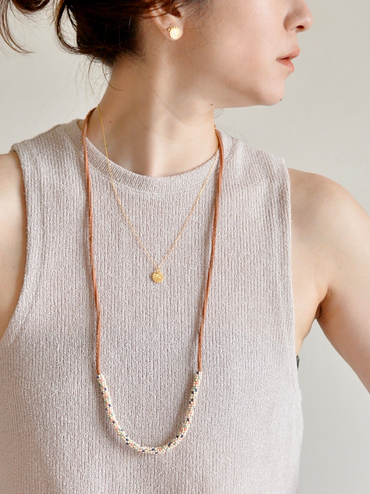 革紐の先にもビーズがついているので後ろ姿もアクセントになります。