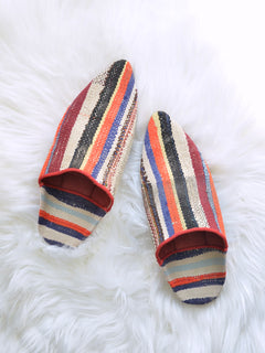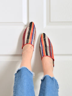 モロッコの伝統布ヴィンテージの「HIKE(ハイク)」をリメイクした、外履き可能なプレミアムバブーシュ。