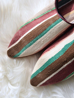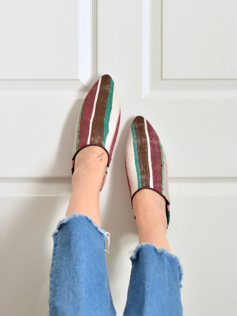 モロッコの伝統布ヴィンテージの「HIKE(ハイク)」をリメイクした、外履き可能なプレミアムバブーシュ。