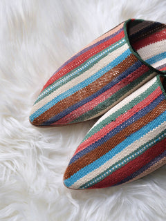 モロッコの伝統布ヴィンテージの「HIKE(ハイク)」をリメイクした、外履き可能なプレミアムバブーシュ。