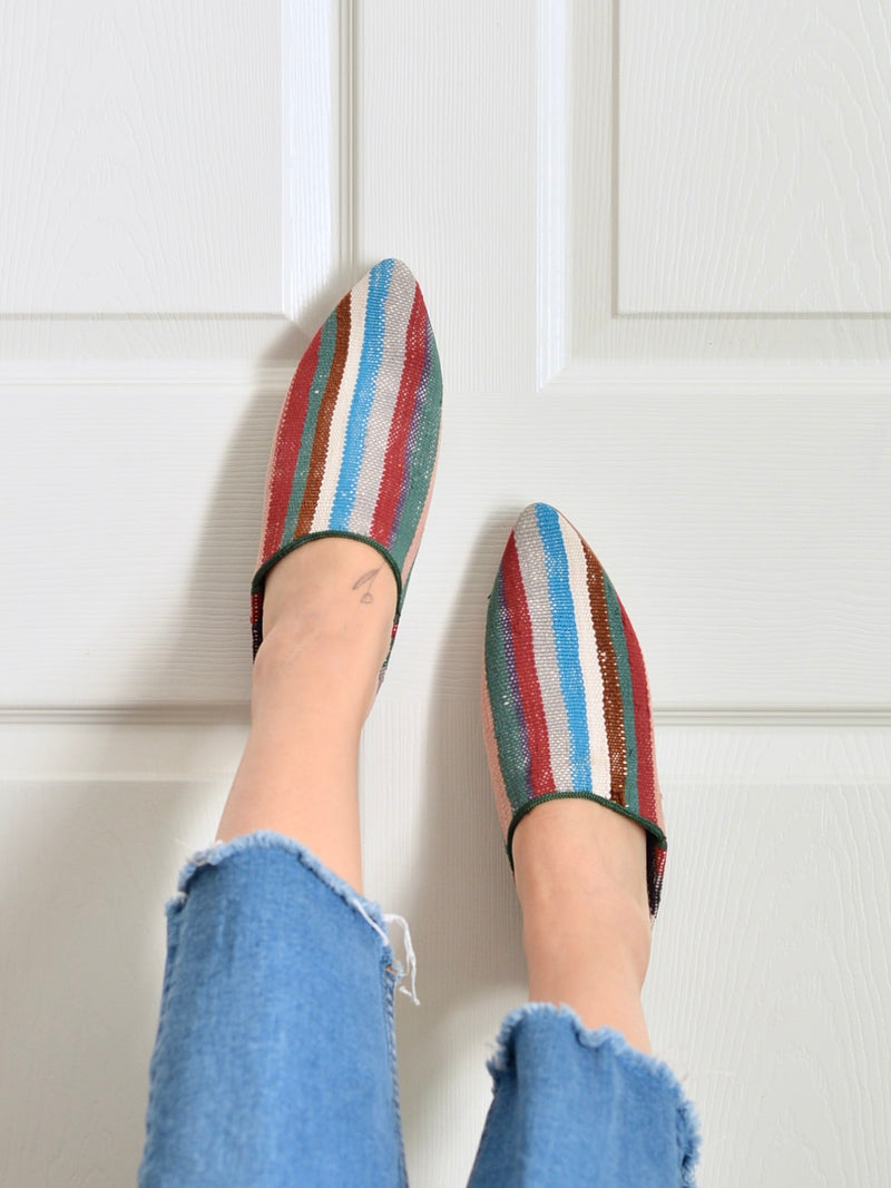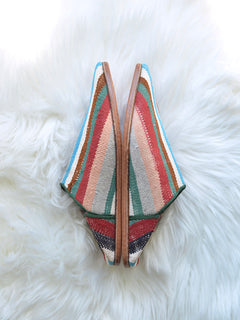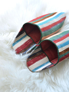 モロッコの伝統布ヴィンテージの「HIKE(ハイク)」をリメイクした、外履き可能なプレミアムバブーシュ。