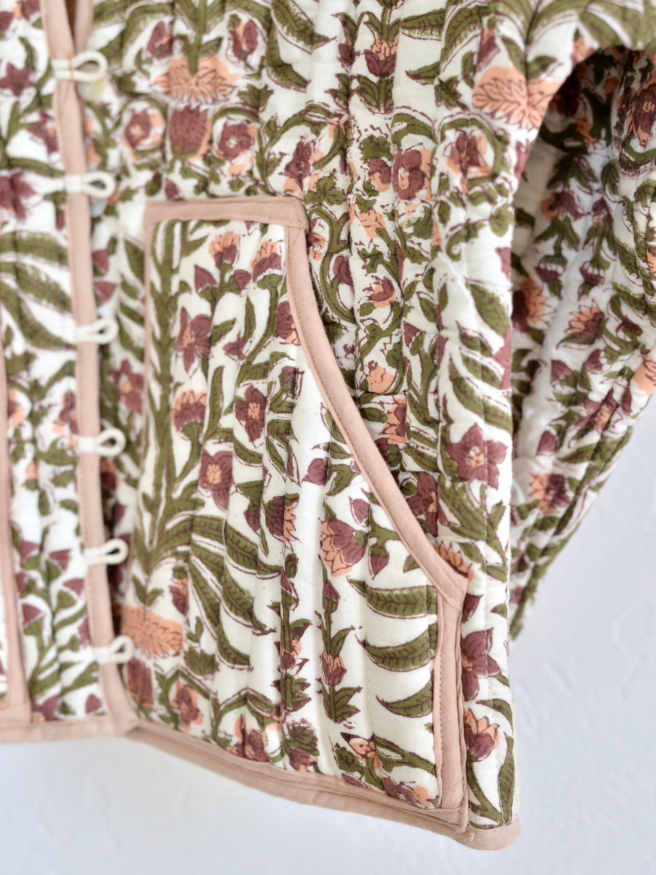 草木染めとハンドブロックプリントのリバーシブルジャケット。