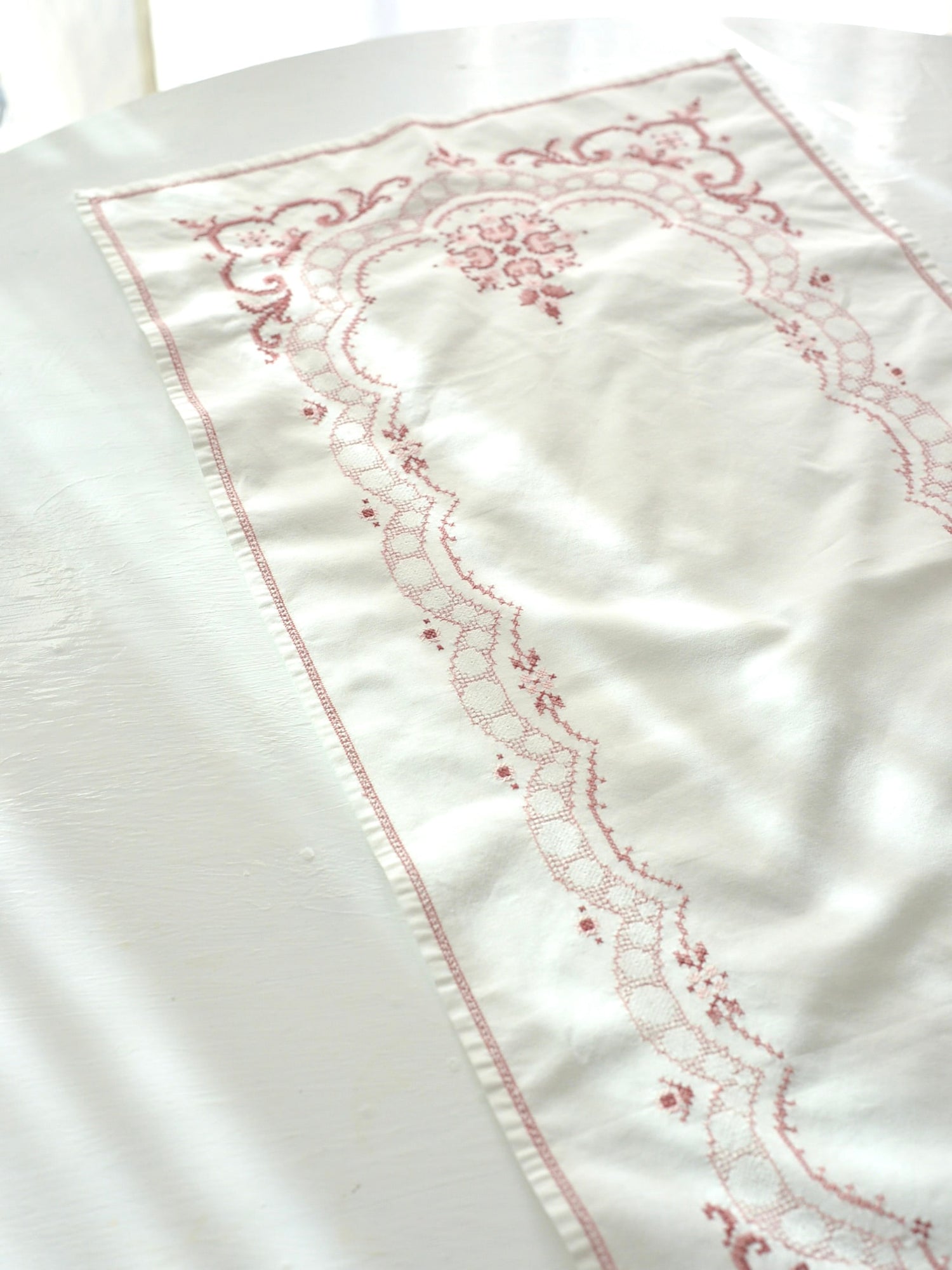 ポーランドのアンティークショップで見つけたクロスステッチのテーブルセンターです。
