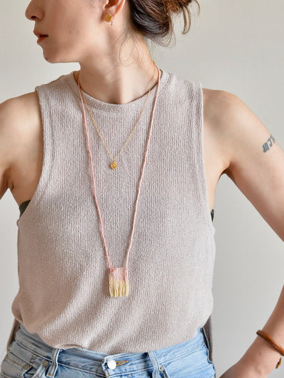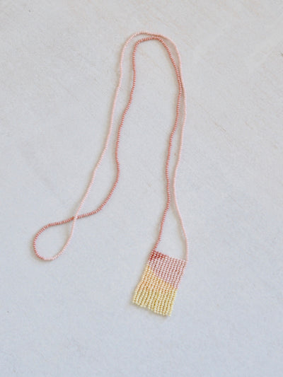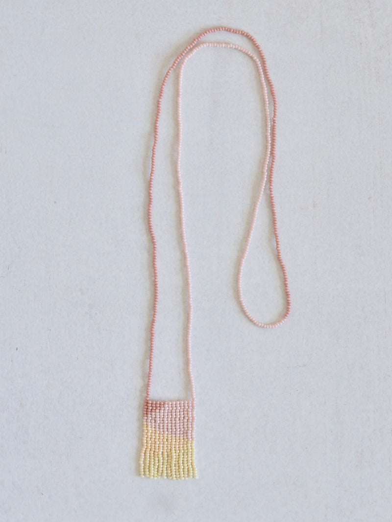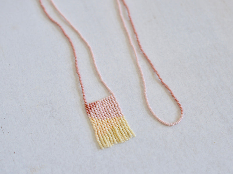 ピンクのグラデーションがかわいいビーズのロングネックレス 。