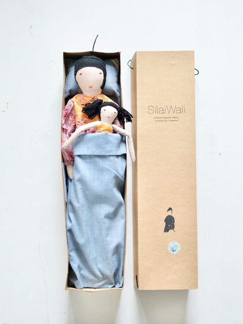 人形が着ているドレスをはじめ、Slilaiwaliが作るアイテムは衣料品製造業界からの繊維くずやデッドストックをアップサイクルしています。