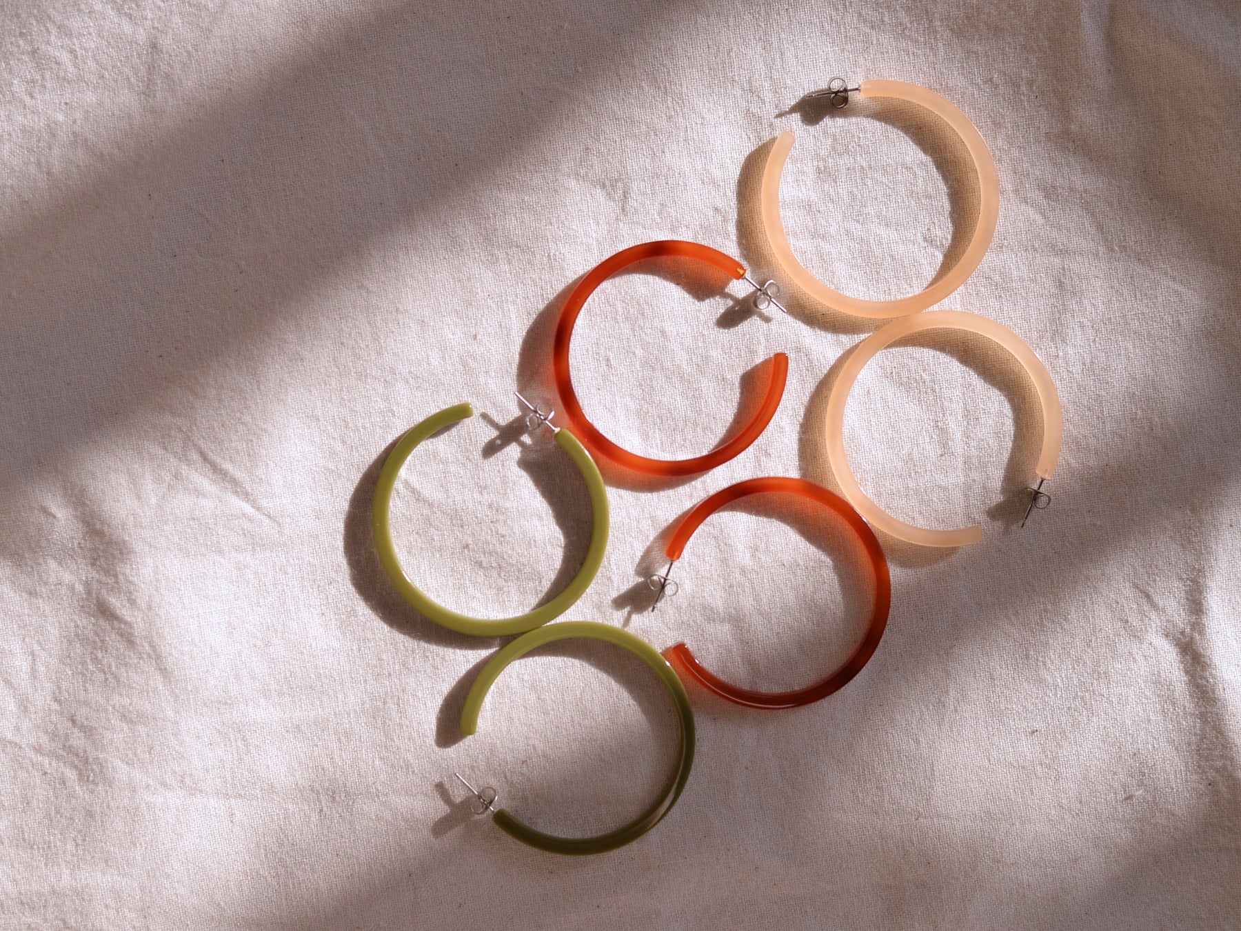 石油由来のプラスチックに比べて透明度が高く、ほかにはない色と手触りの良さ。特に艶やかな質感が特徴です。