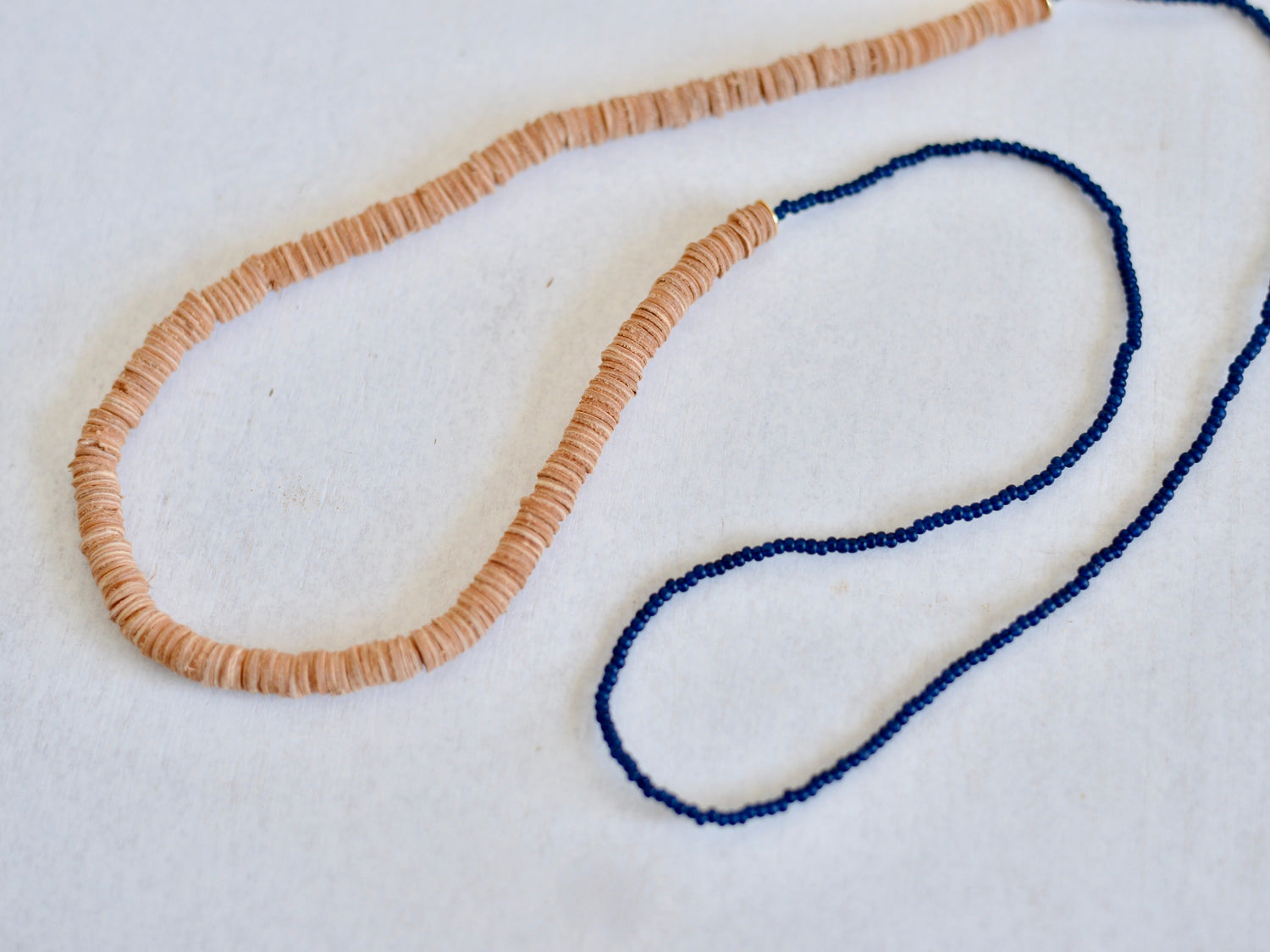 Tシャツやニットのトップスなどにもあわせやく、カジュアルな装いをさりげなくアップデートしてくれるネックレスです。