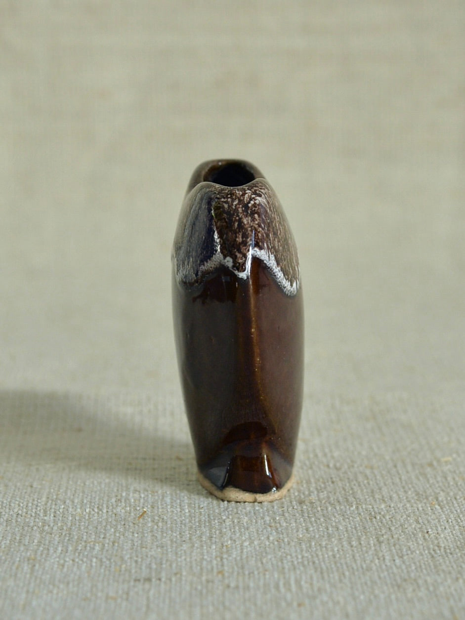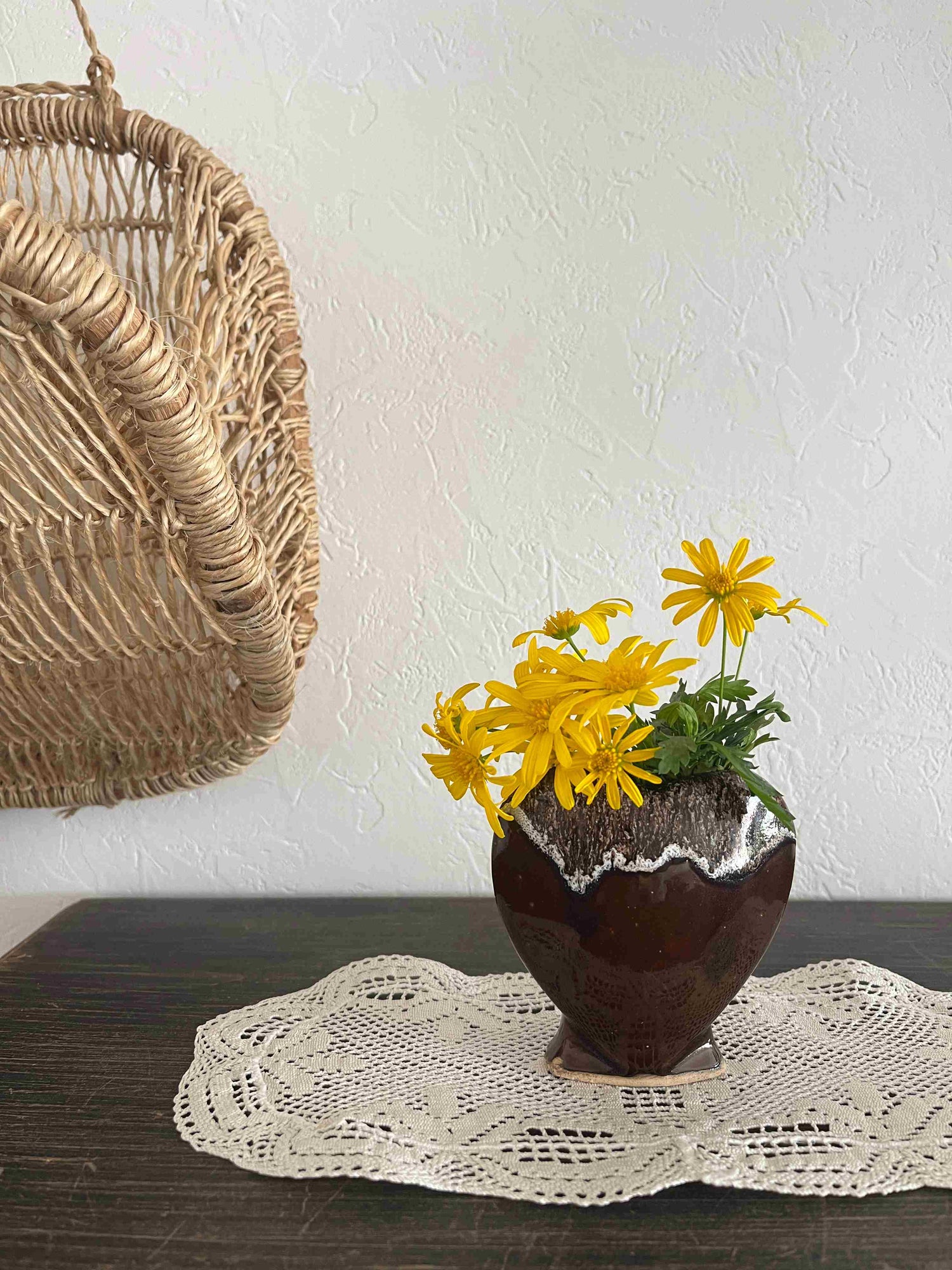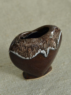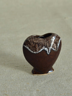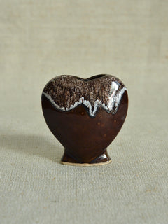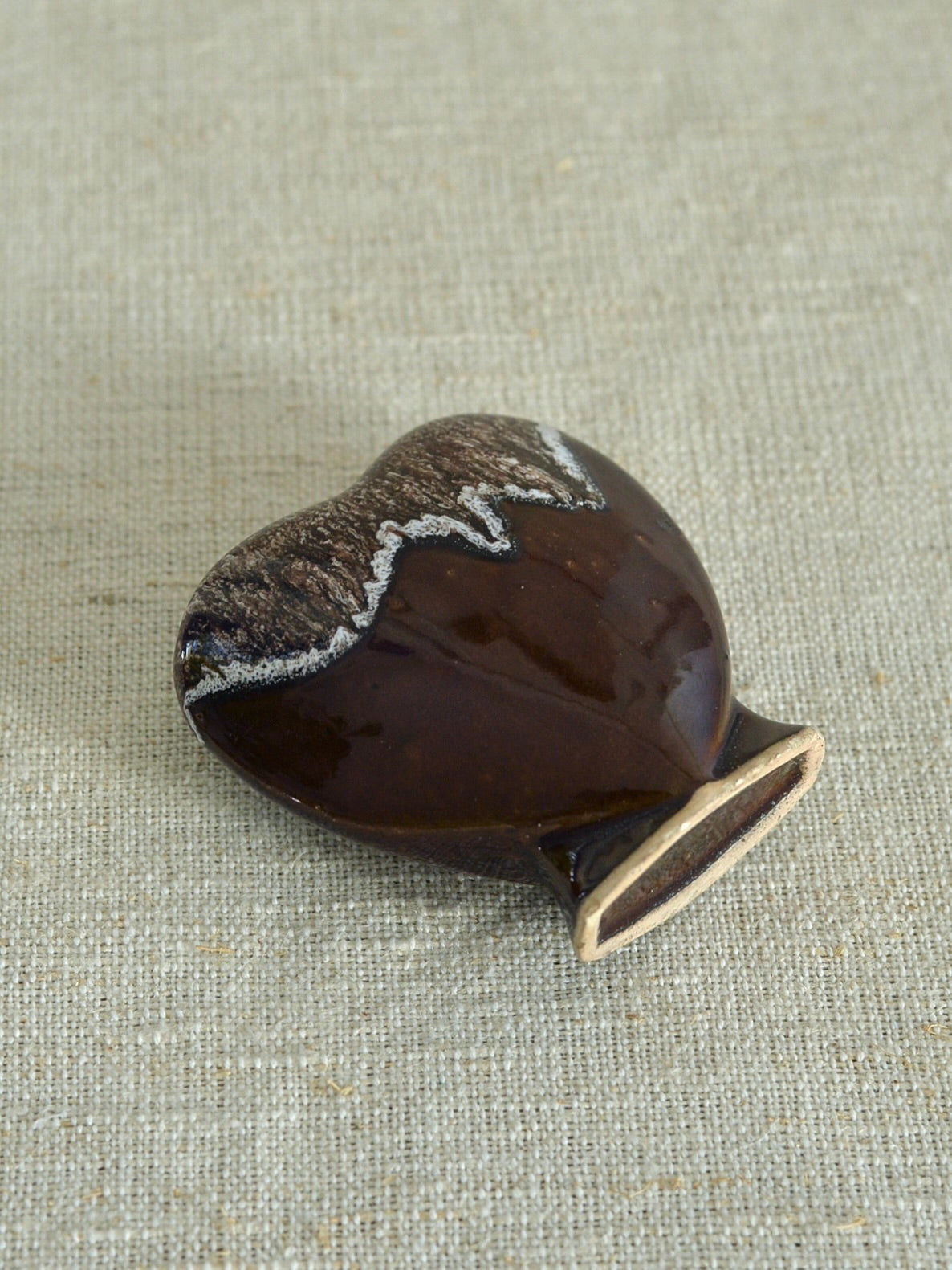 深みのあるブラウン、釉薬のデザイン、ハートのフォルムがアートのようで小ぶりなサイズながらも存在感があります。